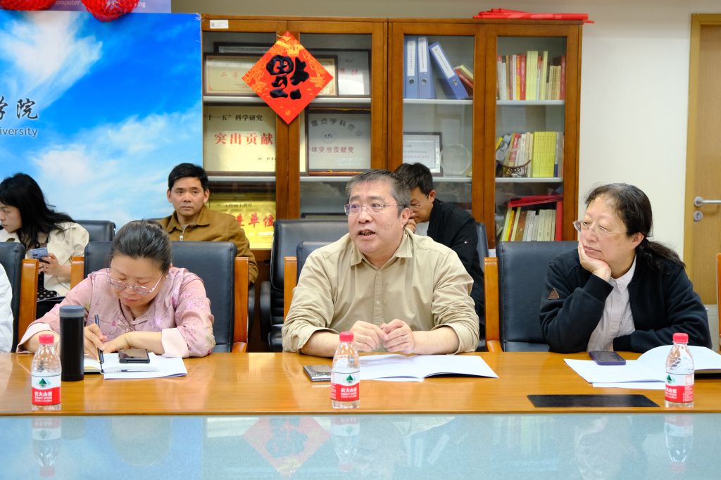 副院长卢静汇报了学院综合改革方案,从人才培养、科学研究、师资队伍、国际合作、党建和组织运行等方面介绍了学院综合改革建设目标。