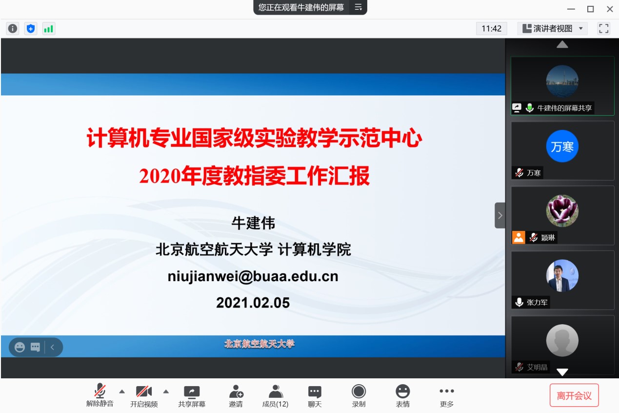 2021年2月5日,北京伊人99计算机专业国家级实验教学示范中心教学指导委员会视频会议顺利召开。计算机专业国家级实验教学指导委员会专家和示范中心骨干成员参加了此次会议。会议由示范中心主任牛建伟教授主持。