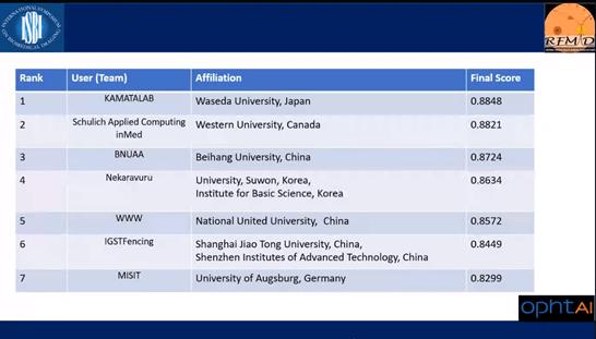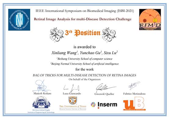 计算机学院谷云超团队获IEEE ISBI 2021 Retinal Image Analysis for multi-Disease Detection竞赛季军