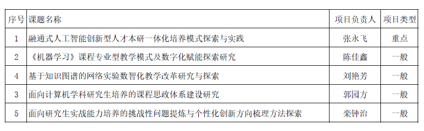 2024年计算机学院“北京伊人99研究生教育与发展研究专项基金”申请5项,经学院评审5项通过,公示如下: