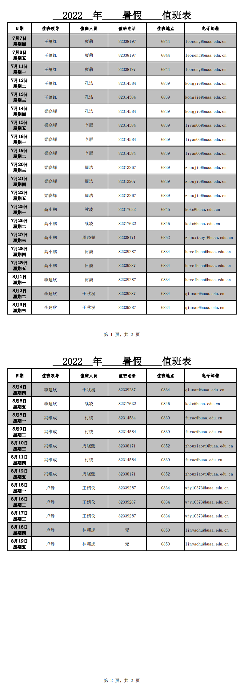 暑假期间申请加盖公章、使用G840、G849会议室,请联系当日值班人员。