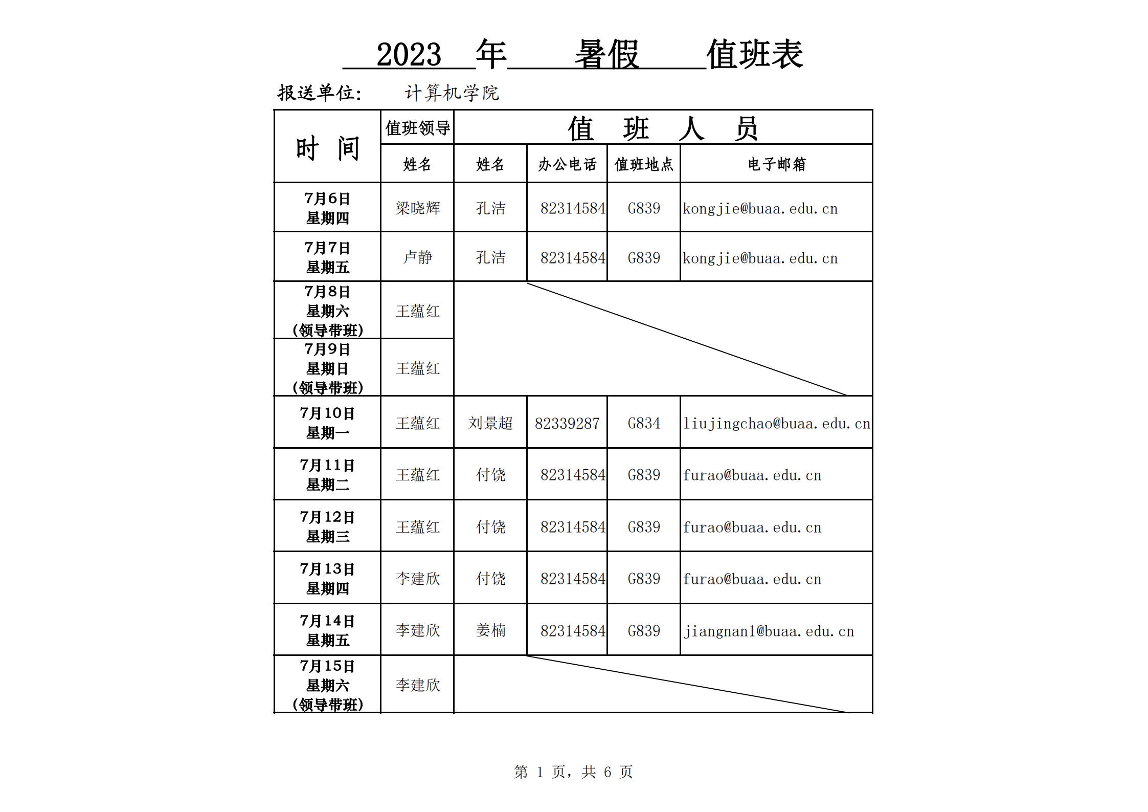 暑假期间申请加盖公章、使用G840、G849会议室,请联系当日值班人员。